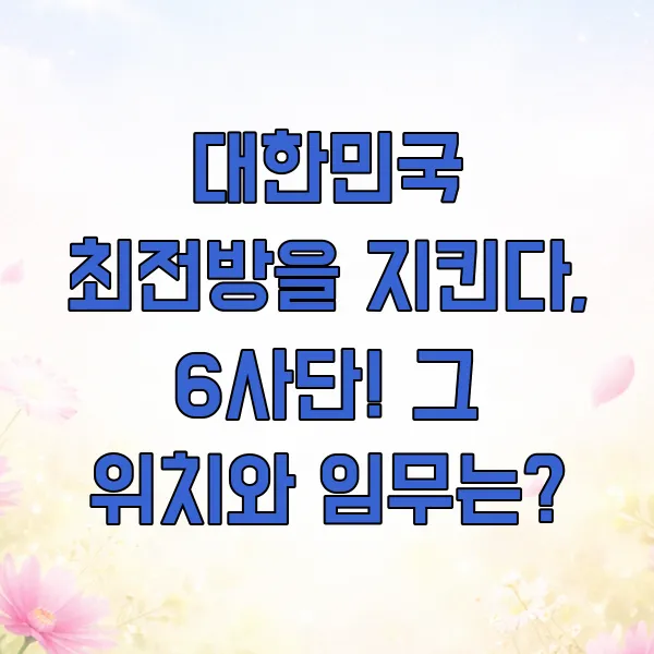 본 블로그 게시물은 6사단의 위치와 주요 임무에 대한 일반적인 정보를 제공하기 위해 작성되었습니다. 특정 시점의 군사 정보나 작전 세부 사항은 공개되지 않거나 변동될 수 있습니다. 본 콘텐츠는 어떠한 군사 작전이나 군사 기밀에 관한 내용을 포함하지 않으며, 일반 대중의 이해를 돕기 위한 목적으로만 활용되어야 합니다.